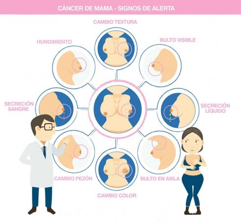 Si tienes un bulto que no duele, pero es firme y puede estar en la mama, cerca de ella o en la zona de debajo del brazo. Si tienes secreción por el pezón de líquido que no sea leche materna, y puede ser sanguinolento. Otra señal de alerta es la retracción del pezón, cuando este se mete hacia dentro. Si aparecen hoyuelos en la piel de la mama, o algo similar a la piel naranja. Alteración cutánea ya sea en el seno o en el pezón, como enrojecimiento, descamación, ulceraciones o cambios en los pliegues. Y aumento del tamaño del seno o cambios en su forma.
