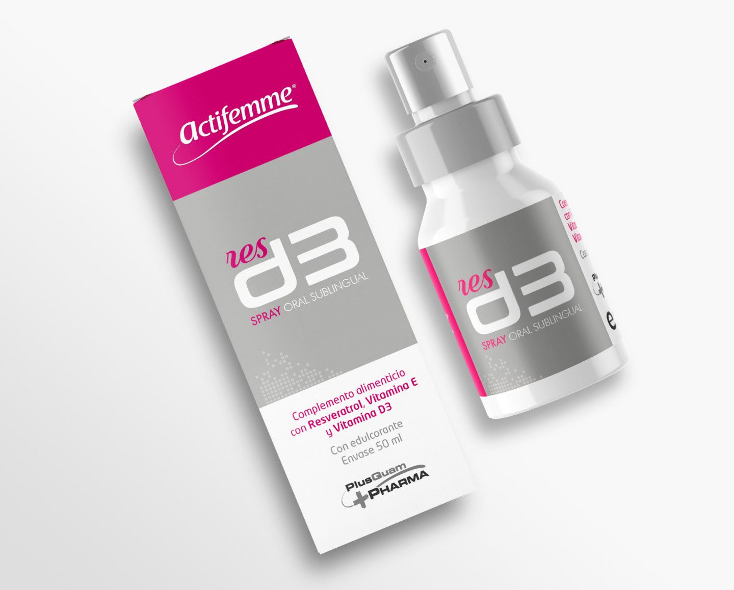 Actifemme® RESD3 contiene resveratrol, vitamina D3 y vitamina E. Gracias a su administración como spray oral sublingual en nanoemulsión, se incrementa la acción del resveratrol en el cerebro, permitiendo una acción rápida y eficaz. El resveratrol es un fitopolifenol no flavonoide, perteneciente al grupo de los estilbenos. Se considera una prometedora molécula natural bioactiva, dotada de propiedades fitoterapéuticas y farmacológicas con actividad antioxidante, antiinflamatoria, hipolipemiante y antiagregante.