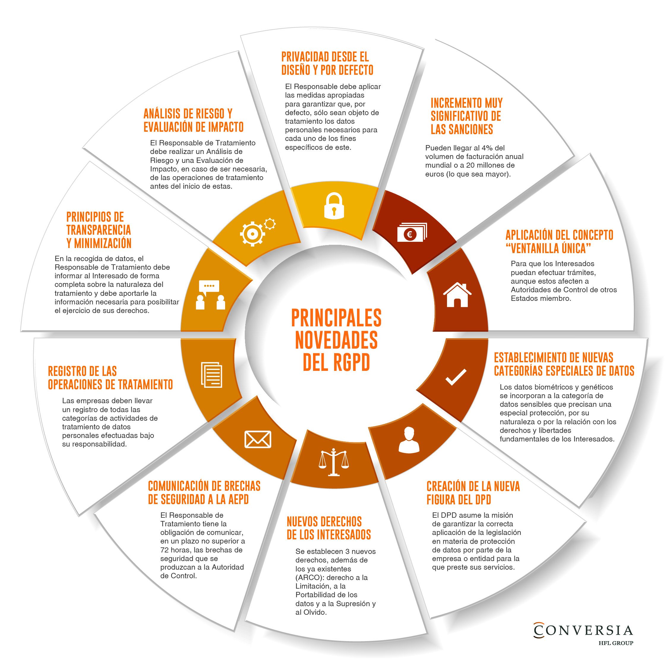 Conversia, la empresa líder en servicios de cumplimiento normativo para pymes y profesionales, ha creado un decálogo de las principales novedades del nuevo Reglamento General de Protección de Datos (UE) 2016/679 (RGPD), con el objetivo de promover la correcta adecuación a esta normativa, que fue de plena aplicación en todo el territorio europeo desde el pasado 25 de mayo. Dos años después de la aprobación del RGPD en el Parlamento Europeo, Conversia ya ha asesorado a más de 39.000 empresas, profesionales y entidades en referencia a los requerimientos en materia de protección de datos que establece este nuevo marco legal.
