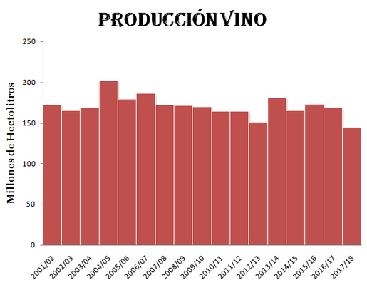 Se espera una producción de 145 millones de Hectolitros en la campaña 2017/2018, esto es una caída del 17%. Se trata de la cifra más baja en todo lo que va de siglo